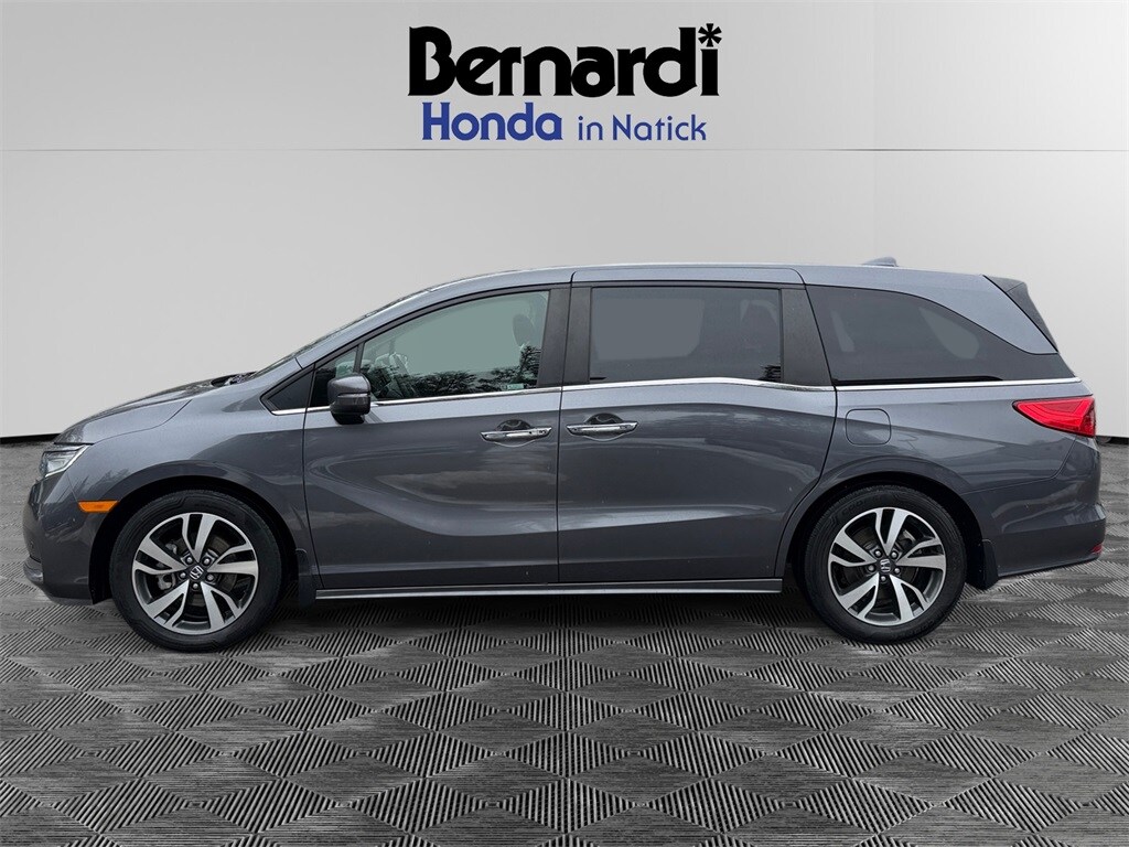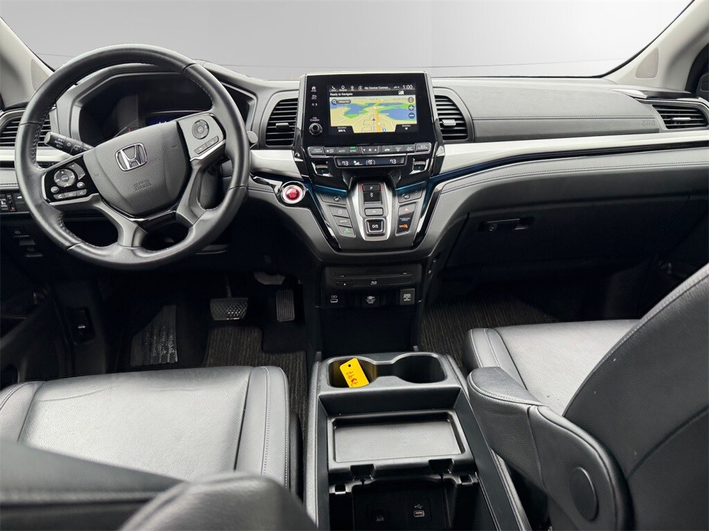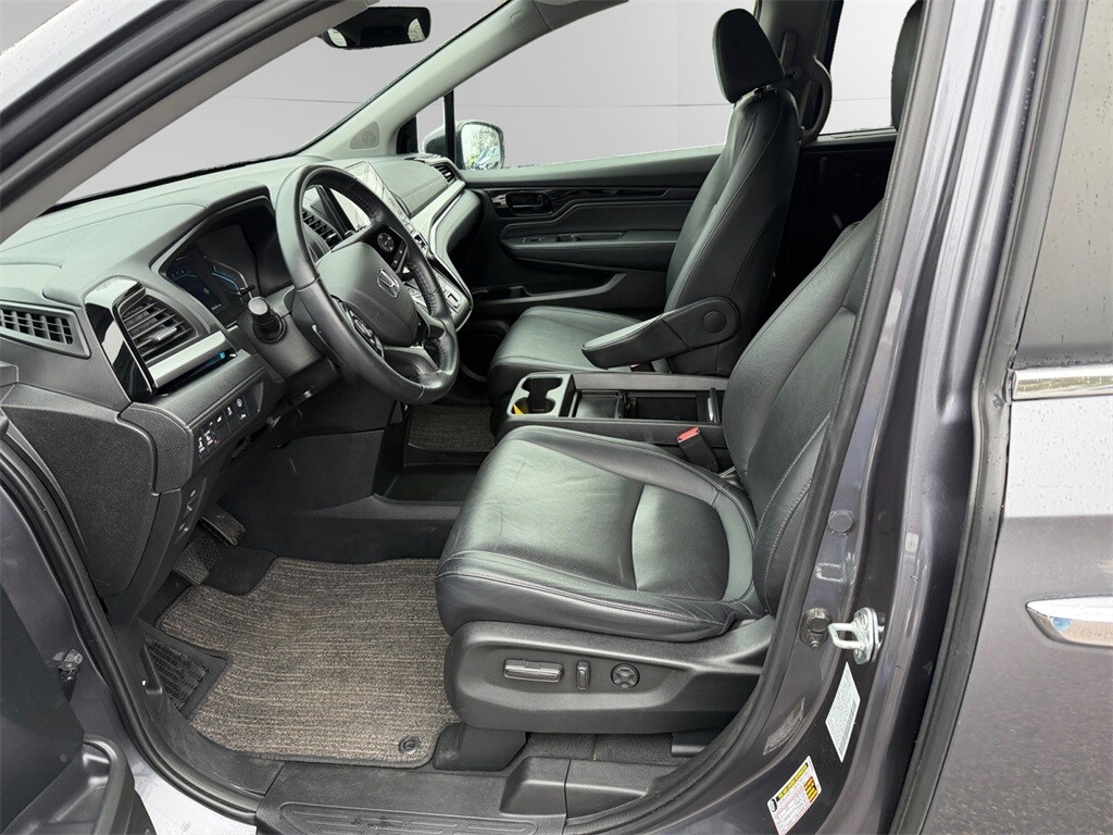 2 Sets of Keys, Adaptive Cruise Control with Low Speed Follow, Apple CarPlay & Android Auto, Backup Camera/Rearview Camera/Parking Camera, Bluetooth HandsFreeLink and Streaming Audio, Complimentary CarFax Vehicle History Report, Dual Zone Automatic Climate Control, Extremely Clean, Forward Collision Warning, Lane Departure Warning, Lane Keeping Assist System, Leather Trimmed Seats & Heated Front Seats, One-Touch Power Moonroof w/ Tilt Feature, Power Sliding Doors, Power Taligate/Power Liftgate, 3rd row seating, Push Button Start, Remote Engine Starter/Remote Start/Remote Car Starter, Road Departure Mitigation System, Smart Entry with Push Button Start, Odyssey Touring, 4D Passenger Van, 3.5L V6 SOHC i-VTEC 24V, 10-Speed Automatic, FWD, Modern Steel Metallic, Black w/Leather Seat Trim, 3rd row seats: split-bench, 4-Wheel Disc Brakes, A/V remote: CabinControl, ABS brakes, Adaptive Cruise Control: Adaptive Cruise Control (ACC) with Low-Speed Follow, Air Conditioning, Auto High-beam Headlights, Automatic temperature control, Blind Spot Information (BSI) System warning, Brake assist, Delay-off headlights, Driver's Seat Mounted Armrest, Electronic Stability Control, Exterior Parking Camera Rear, Forward collision: Collision Mitigation Braking System (CMBS) + FCW mitigation, Four wheel independent suspension, Front Bucket Seats, Front dual zone A/C, Front fog lights, Fully automatic headlights, Headphones, Heated Front Bucket Seats, Heated front seats, Lane departure: Lane Keeping Assist System (LKAS) active, Leather Seat Trim, Memory seat, Navigation system: Honda Satellite-Linked Navigation System, Panic alarm, Power driver seat, Power Liftgate, Power moonroof, Power passenger seat, Power steering, Power windows, Rear air conditioning, Rear window defroster, Rear window wiper, Reclining 3rd row seat, Remote keyless entry, Security system, Speed control, Speed-sensing steering, Speed-Sensitive Wipers, Split folding rear seat, Steering wheel mounted audio controls, Traction control, Variably intermittent wipers, Wheels: 19" Machine-Finished Alloy.