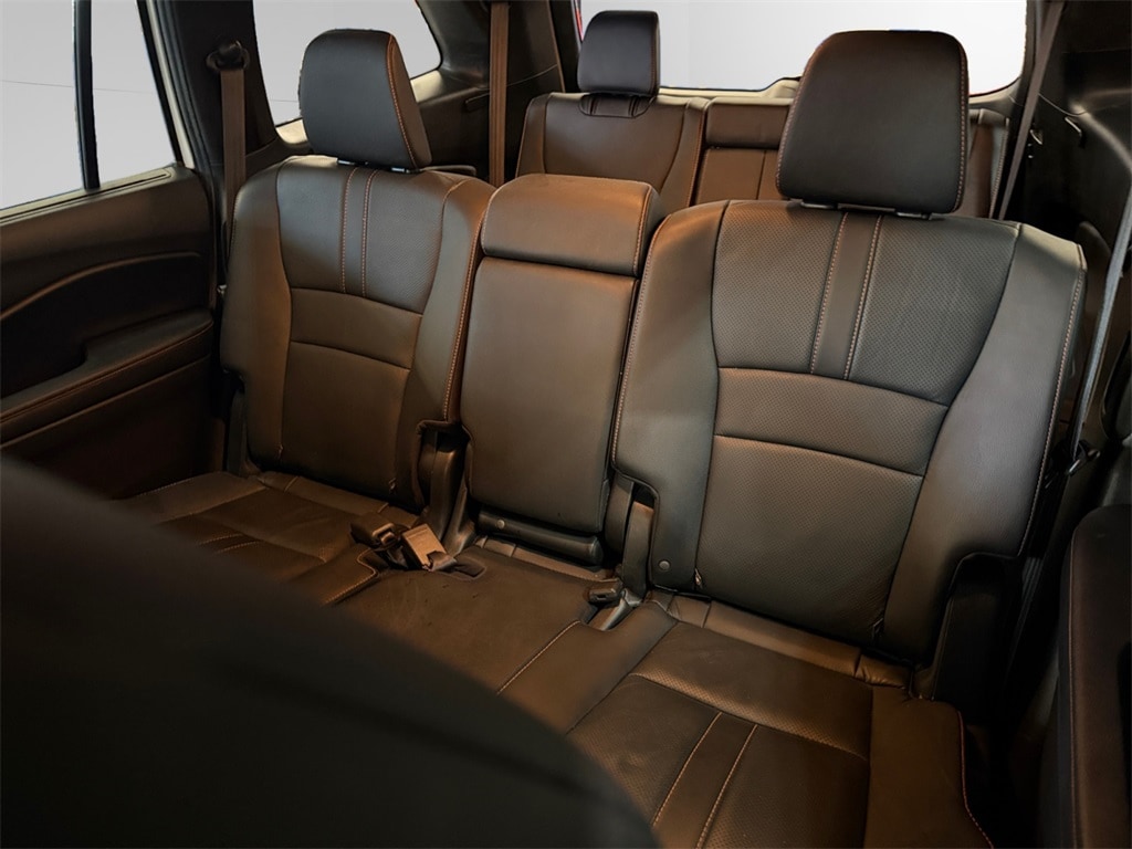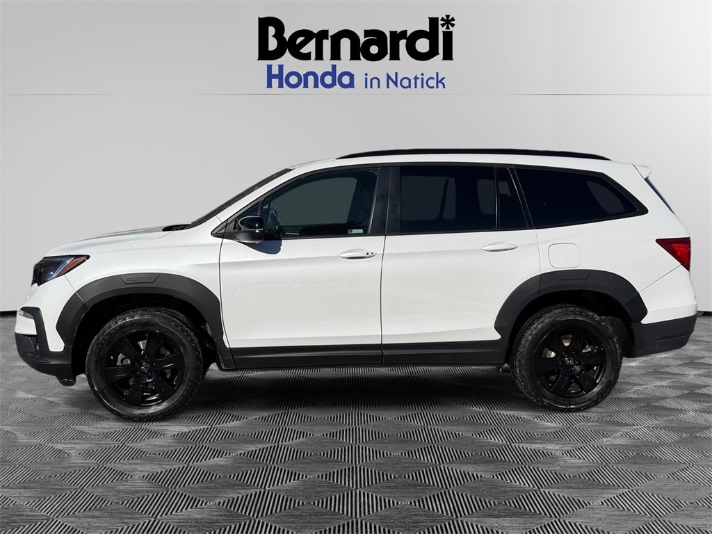 2 Sets of Keys, Adaptive Cruise Control with Low Speed Follow, Apple CarPlay & Android Auto, Backup Camera/Rearview Camera/Parking Camera, Bluetooth HandsFreeLink and Streaming Audio, Complimentary CarFax Vehicle History Report, Dual Zone Automatic Climate Control, Extremely Clean, Lane Departure Warning, Lane Keeping Assist System, Leather Trimmed Seats & Heated Front Seats, One-Touch Power Moonroof w/ Tilt Feature, Power Taligate/Power Liftgate, 3rd row seating, Push Button Start, Remote Engine Starter/Remote Start/Remote Car Starter, Road Departure Mitigation System, Pilot TrailSport, 4D Sport Utility, 3.5L V6 24V SOHC i-VTEC, 9-Speed Automatic, AWD, Platinum White Pearl, Black w/Perforated Leather Seat Trim, 3rd row seats: split-bench, 4-Wheel Disc Brakes, ABS brakes, Air Conditioning, Auto High-beam Headlights, Automatic temperature control, Blind Spot Information (BSI) System warning, Brake assist, Delay-off headlights, Electronic Stability Control, Forward collision: Collision Mitigation Braking System (CMBS) + FCW mitigation, Four wheel independent suspension, Front Bucket Seats, Front dual zone A/C, Front fog lights, Fully automatic headlights, Lane departure: Lane Keeping Assist System (LKAS) active, Memory seat, Panic alarm, Power driver seat, Power Liftgate, Power moonroof, Power steering, Power windows, Rear air conditioning, Rear window defroster, Rear window wiper, Remote keyless entry, Security system, Speed-sensing steering, Speed-Sensitive Wipers, Steering wheel mounted audio controls, Traction control, Variably intermittent wipers, Wheels: 18" Exclusive Gloss Black Alloy.