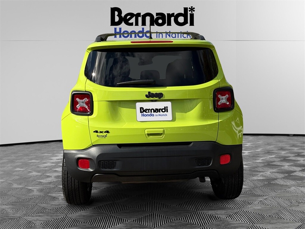 2 Sets of Keys, Renegade Sport, 4D Sport Utility, 2.4L I4, 9-Speed 948TE Automatic, 4WD, Hypergreen Clearcoat, Black w/Cloth Low-Back Bucket Seats, 2 Front Tow Hooks, Air Conditioning, All-Season Floor Mats, Black Side Roof Rails, Brake assist, Deep Tint Sunscreen Glass, Delay-off headlights, Electronic Stability Control, Four wheel independent suspension, Gloss Black Badging, Hill Descent Control, Normal Duty Suspension, Panic alarm, ParkView Rear Back-Up Camera, Passive Entry/Keyless Go, Power & Air Group, Power Heated Mirrors, Power steering, Power windows, Quick Order Package 2EN Upland Edition, Rear window defroster, Rear window wiper, Remote keyless entry, Remote Start System, Speed Control, Steering wheel mounted audio controls, Traction control, Upland Edition, Variably intermittent wipers, Wheels: 17" x 6.5" Semi-Gloss Black Aluminum.